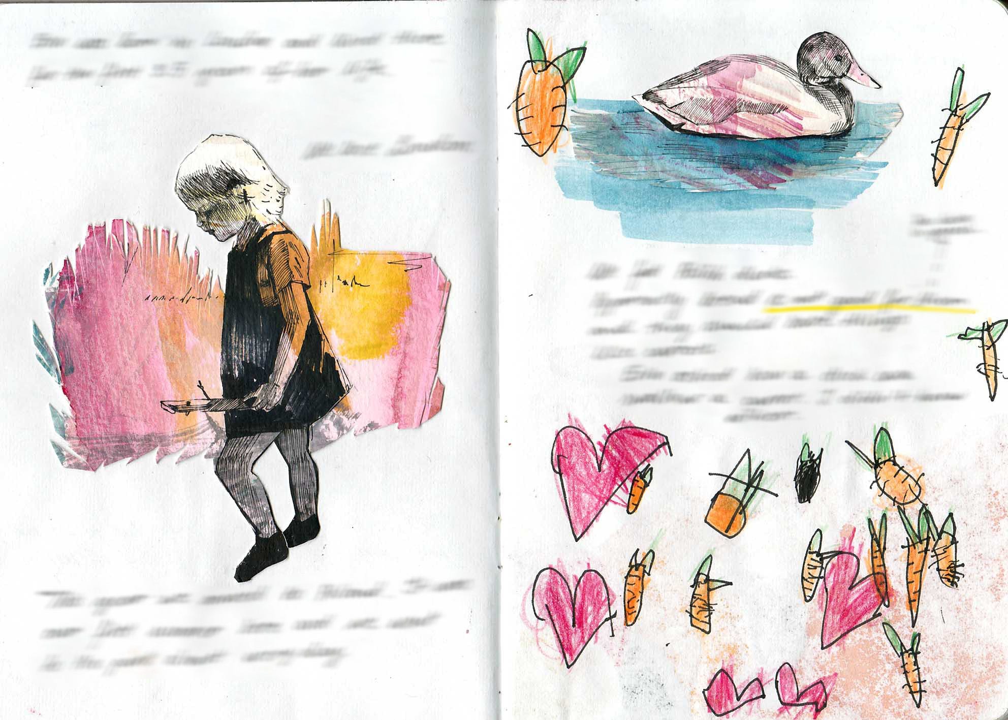 I didn’t keep a sketchbook for a couple of years after I left school because it made me tense. I wanted my work to be perfect, and every single page filled me with fear. My expectations were too high to allow me to notice the fun side of experimenting. And then I had children and learnt that you have to accept what is and let go of what isn’t – which I believe is the easiest way to truly enjoy the present.
