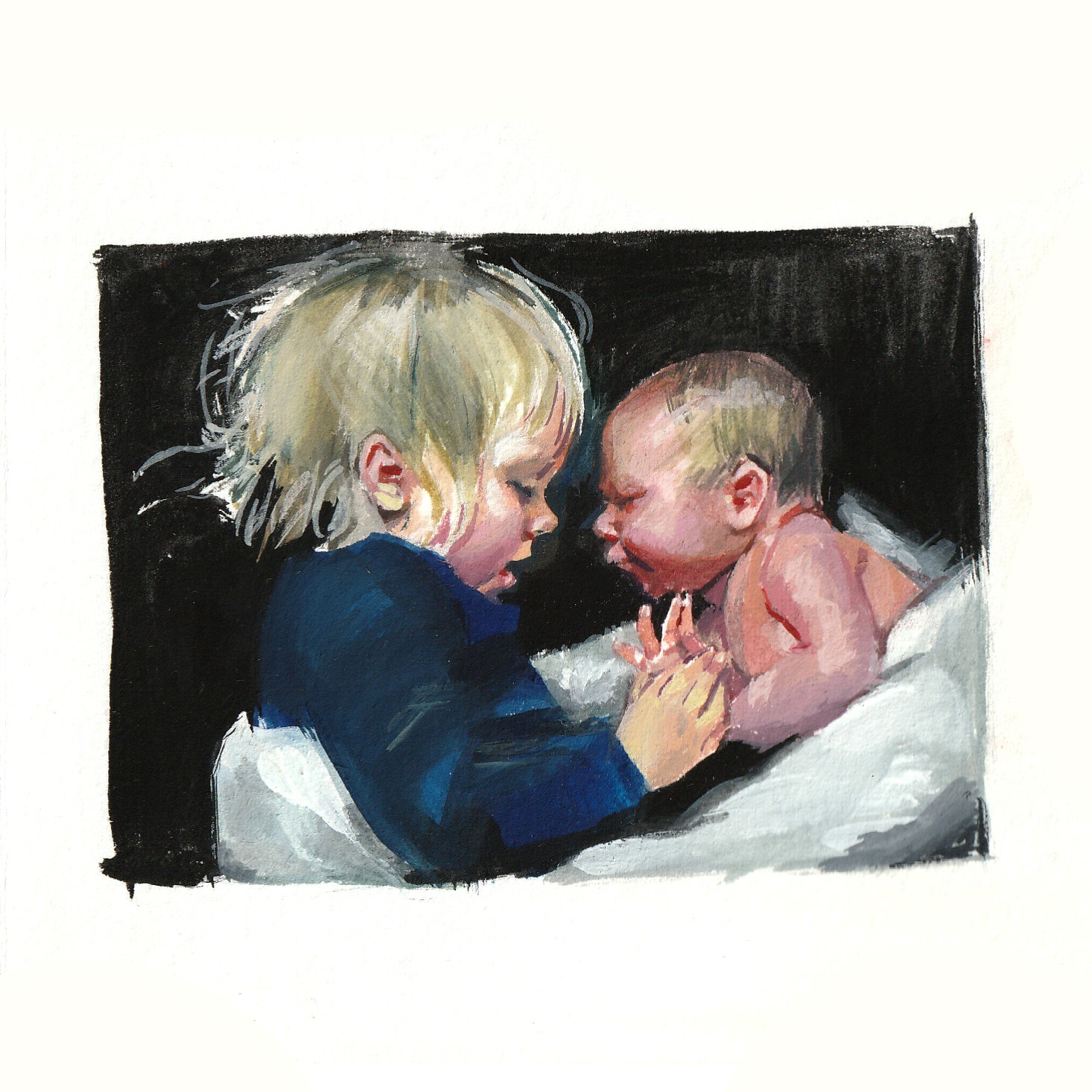 My first child was a sensitive sleeper – she woke up every time I left the room. So I read, looked at paintings online, and watched things – but if you’re a creative person, your urge to create is stronger than your urge to consume. And so I started drawing her. Some sketches were great, some were terrible – but I kept sketching nonetheless, and soon I began to notice that I was getting better and better at expressing my message. I believe it was a message to myself and to my child: a record of a peaceful moment together, of the simplicity and beauty of looking at my baby with love – and my effort to capture that moment as a still image.